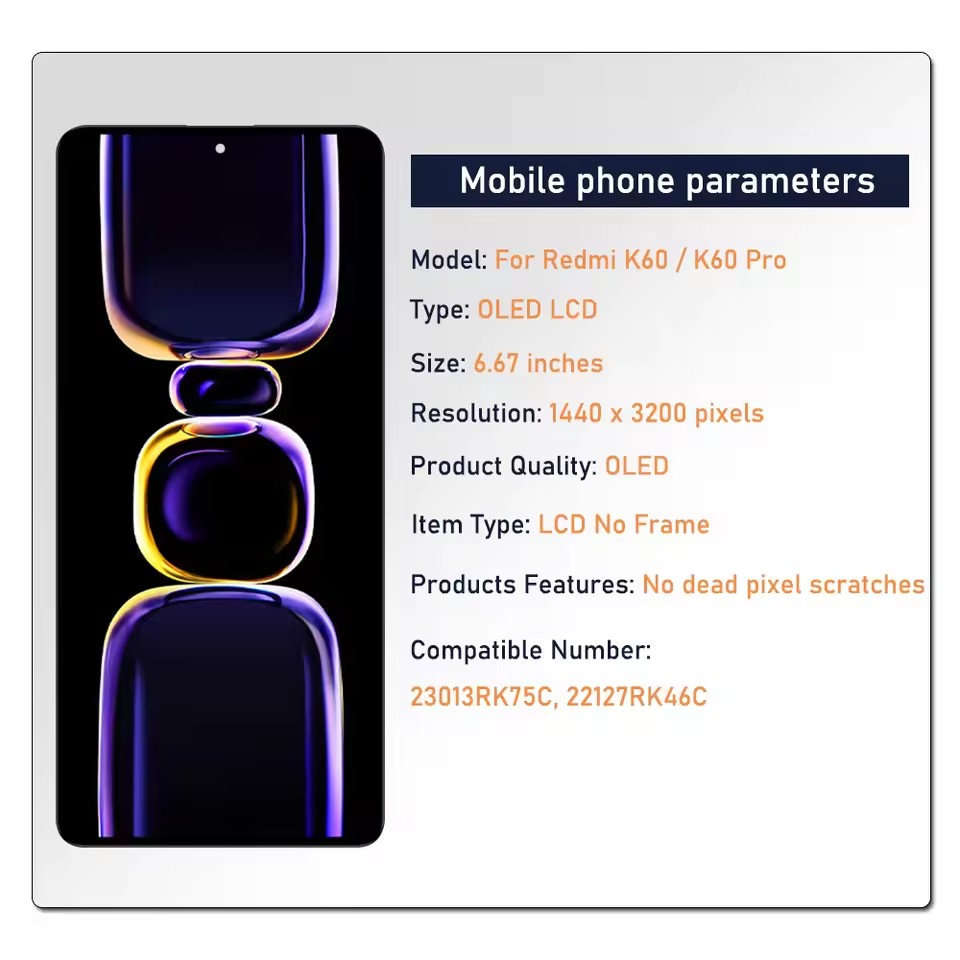 Compatible with: Redmi K60/K60 Pro Lcd Screen Replacement